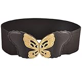 Women espresso color elasticated waist belt, created with gold tone metallic butterfly decor and hook buckle closure. Gorgeous and graceful waist belt fits for ladies putting on on any situation to include stylish appear. Trendy and sophisticated design, great accent for ladies use to match with divers dresses, prolonged shirts, and so forth. Make sure you make certain the belt measurement suit for you before buying.