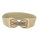Below are the description of Allegra K Ladies Metallic Butterfly Formed Interlocking Buckle three" Width Stretchy Textured Midsection Belt Khaki