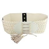 Features: Textured Elastic Broad Band, Braid Type, Wire Tie Tassels Decor Faux Leather Buckle, A few Press Button Closure Cinch Belt. Excellent to match for gown, tunic, oversize shirt, easy to open and close the belt. Insert a contact of color for your wasit with this Cinch Belt.