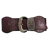 See the comprehensive features and specs Allegra K Woman Gold Tone Double Coronary heart Buckle Elastic Brown Vast Cinch Belt