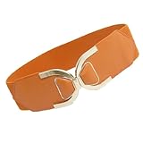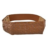 Here are the description of Allegra K Girl Gold Tone Double Coronary heart Buckle Elastic Brown Broad Cinch Belt