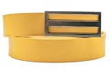 Here are the description of Canterbury Women's 30mm Authentic Leather-based Reduce Out Layout Plaque Buckle Soft Yellow Medium