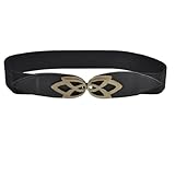Below are the description of Allegra K Hook Buckle Closure Bronze Tone Tulip Decor Elastic Waistbelt Band Black