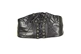 Black Leather-based and Elastic Corset Belt with Black Leather-based Lacing, Gold Trim and Button Clasps Measuring 29"L x 6"W