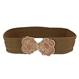 Below are the description of Allegra K Woman Enamel Rose Interlocking Buckle Elastic Cinch Belt Brown
