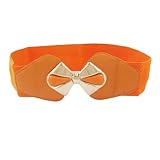 Listed here are the description of Allegra K Woman Gold Tone Bowknot Buckle Wide Stretchy Cinch Belt Orange